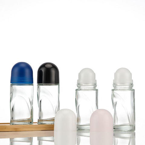 Vidrio pequeño de 50ml para botella de rodillo para antitranspirantes y aceites esenciales Botella de vidrio rodante hecha a mano